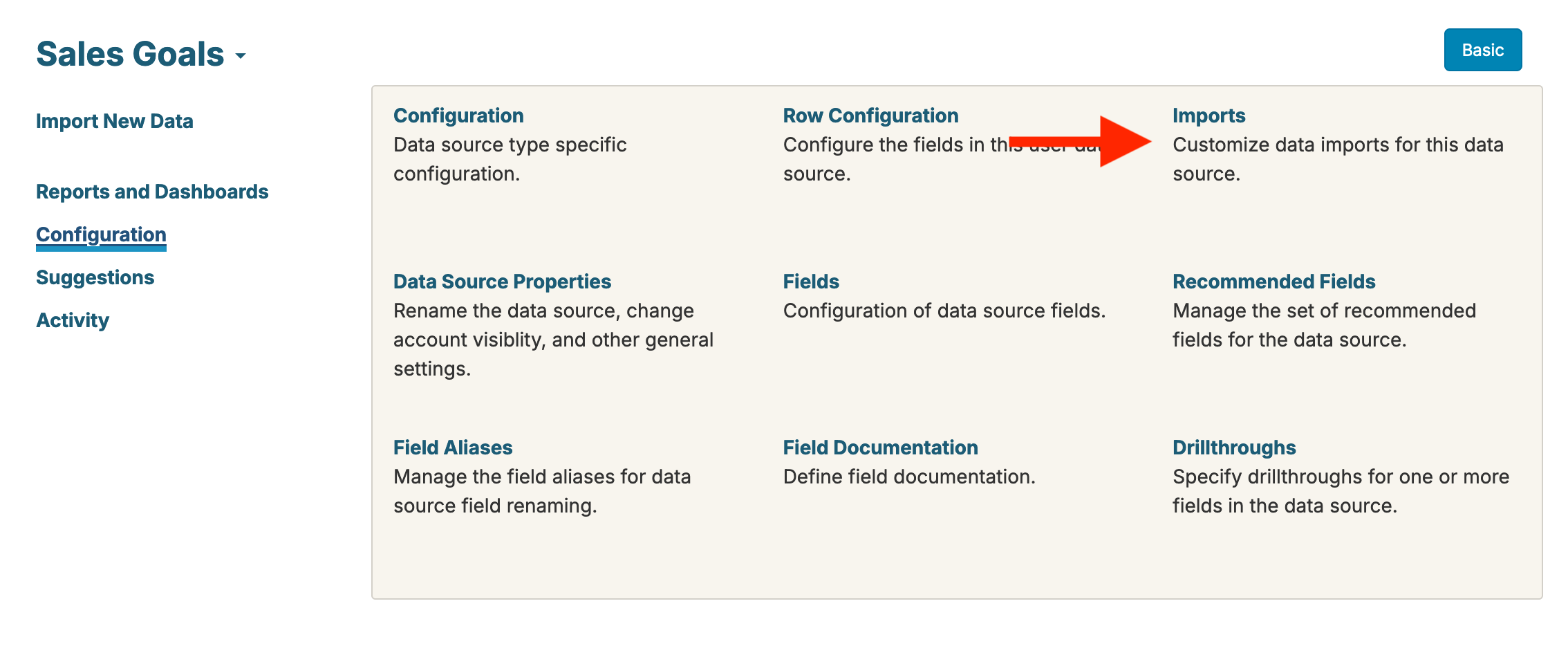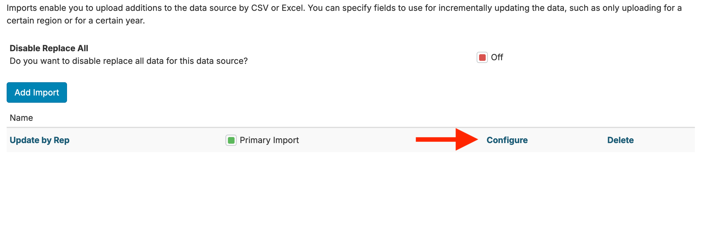 You can configure your imports by going to the Imports section of Configuration on your data source: