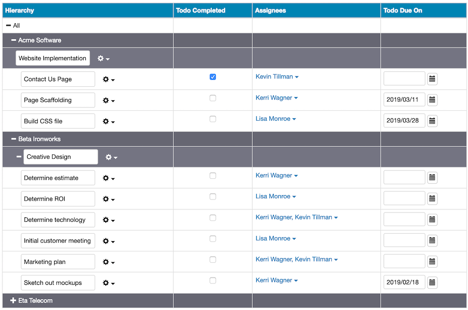 Improve your productivity by updating your Basecamp data directly from your reports. Save time by quickly filtering down to todos across multiple projects and making changes.