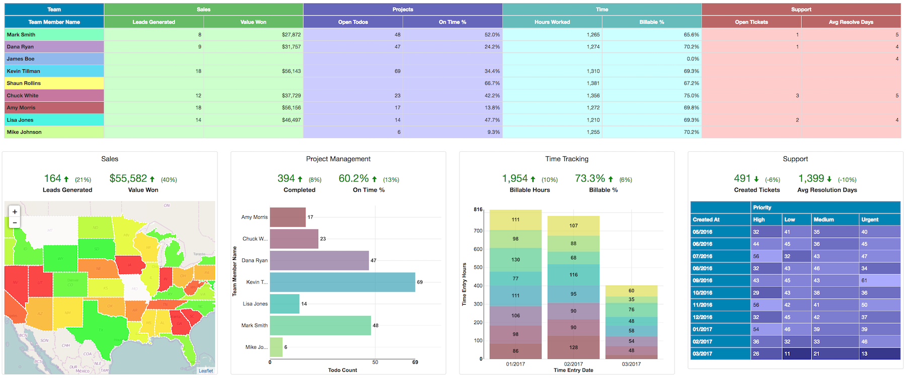 Easy Insight gives you full business intelligence power on top of your QuickBase applications without the time and cost of traditional BI vendors. Beautiful executive dashboards can drill down into detailed pivot tables and grids of the actionable data. A wide variety of robust filters make it easy to slice and dice your way to answers.